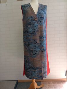 2025/4/04 大島と羽織をロングベストにリメイク 広島で着物リメイクをしている「和み」です。 大島と羽織をリバーシブルのロングベストにリメイクしました。 表側に大島の長着、裏側に朱の羽織を使用しました。 また、共布で帽子を作りました。 クラウンに赤を入れてポイントにしました。 着物リメイク「和み」 広島市中区光南町1丁目1-23 TEL 082-241-0054