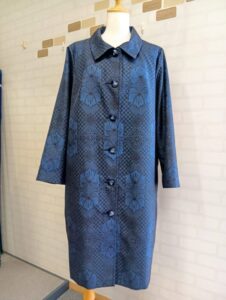 2025/5/30 着物リメイク展 6/27(金)6/28(土) 広島で着物リメイクをしている「和み」です。 次回の着物リメイク展は、6/27(金)6/28(土)です。 AM10時~PM5時にお越しくださいませ。 予約制となっておりますので、前もってお電話してお越しください。 TEL 082-241-0054 携帯 090-3370-1681 おいしいコーヒーとお菓子をご用意してお待ちしております。 さて、今回ご紹介するのは、藍大島をリメイクしたチュニックコートです。 着勝手のよいラグランです。 着物リメイク「和み」 広島市中区光南町1丁目1-23 TEL 082-241-0054
