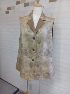 さて、今回ご紹介するのは、アンティークの帯をリメイクしたベストです。