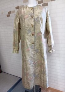 2025/9/29 着物リメイク展 10/24(金)10/25(土) 広島で着物リメイクをしている「和み」です。 次回の着物リメイク展は、10/24(金)10/25(土)です。 AM10時~PM5時にお越しくださいませ。 予約制となっておりますので、前もってお電話してお越しください。 TEL 082-241-0054 携帯 090-3370-1681 おいしいコーヒーとお菓子をご用意してお待ちしております。 さて、今回ご紹介するのは、色留袖をリメイクしたワンショルダーのドレスです。 右袖を振袖にして着物感を残しています。 広島市中区光南町1丁目1-23 TEL 082-241-0054