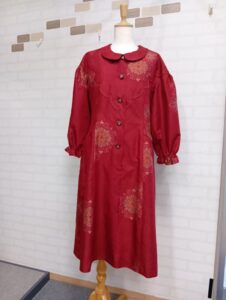 2025/12/12 紬をワンピースにリメイク 広島で着物リメイクをしている「和み」です。 赤の紬をワンピースにリメイクしました。 スカラップにステッチをきかせてポイントにしています。 着物リメイク「和み」 広島市中区光南町1丁目1-23 TEL 082-241-005